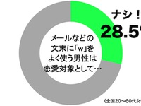 メールやLINEの「w」は使うと恋愛対象外 28.5%