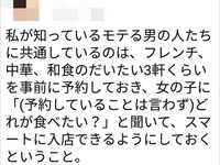 美容家「モテる男は3軒くらい予約して『どれが食べたい?』と訊いてスマートに入店できるようしておくの」勿論、大炎上